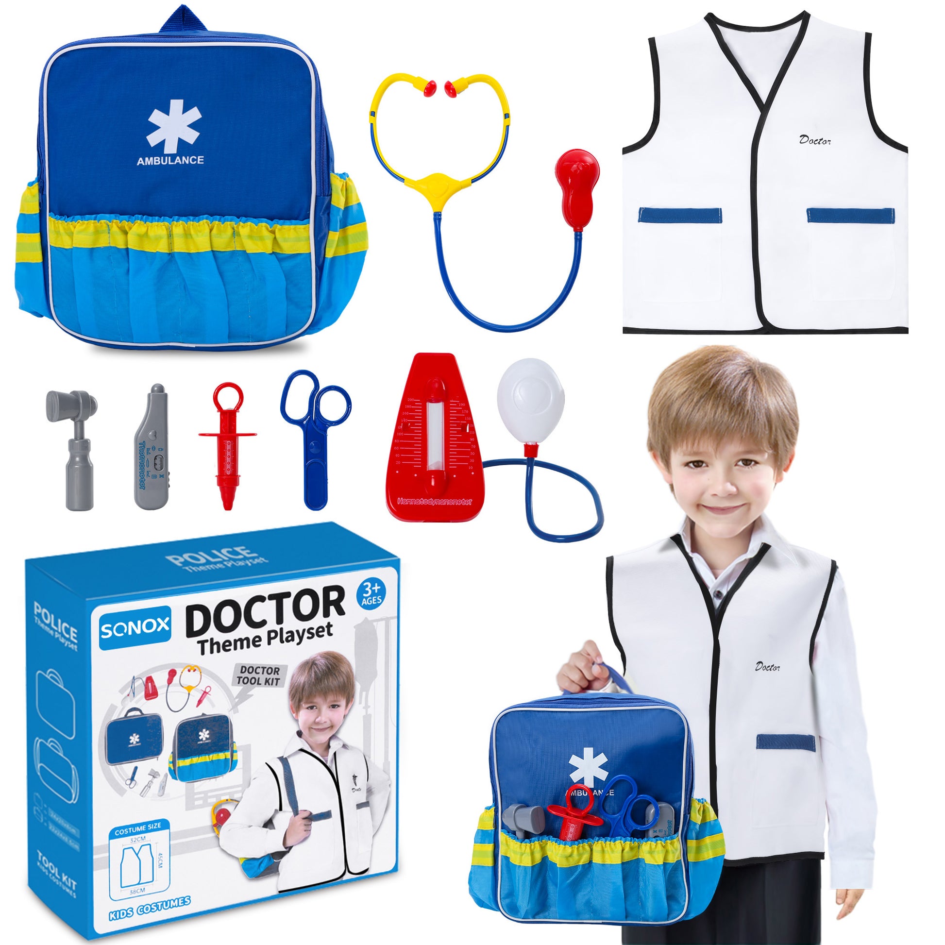 Sqnox Doctor Kit for Toddlers 3-5, Kids Doctor Playset 8 Pcs Pretend Play with School Bag and Vest Boys and Girls Gifts
